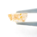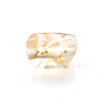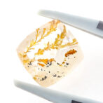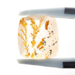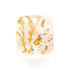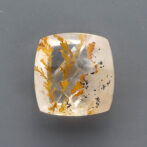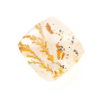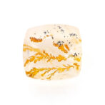その柔らかにゆらめくインクルージョンの様子から、軟質の珊瑚が海流になびいているかのようにも見えます。人によっては紅葉の葉っぱのように見えるかもしれないですし、全く違う景色にも見えるかもしれません。ハーバリウムをそのまま石にしてみました、と言われても信じてしまいそう。こんな不思議な光景を宿す石が、きちんと角がある長方形にカットされると、品よく額縁に収まっているようでより味わいが深まります。