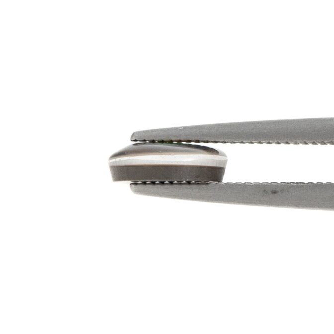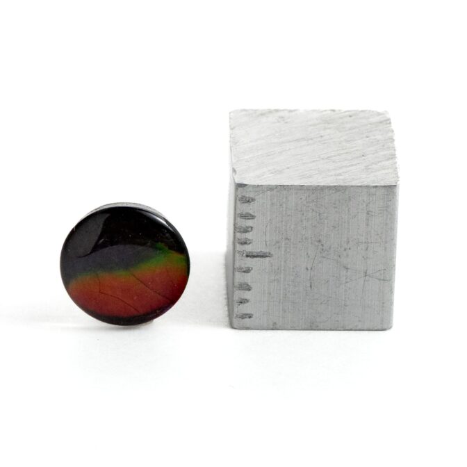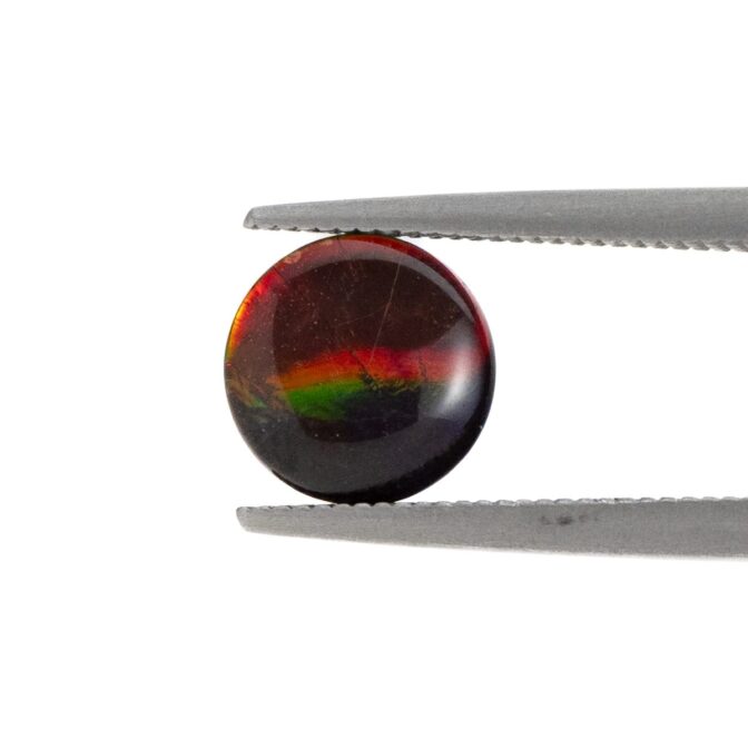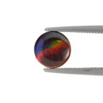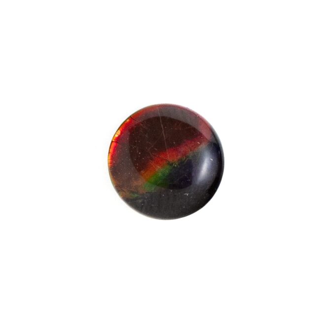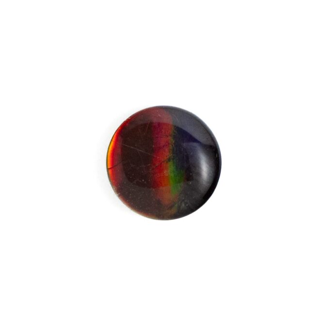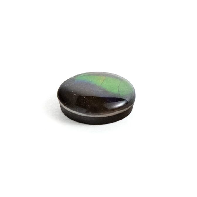 アンモライト層はとても薄くて壊れやすいもの。そこで、ルースにするときは他の石やバッキング素材と組みわあわせ、ダブレットやトリプレットにします。母岩が厚く残っている場合は表面にクォーツやスピネルを張り合わせ、ダブレットに。母岩が薄い場合は裏にも補強のためにオニキスなどを貼り付けてトリプレットにします。このルースも安心してお使い頂けるトリプレットです。ちなみに、張り合わせの加工は通常全てのアンモライトルースに施されているので、ダブレットやトリプレットでも「天然」として扱われます。
