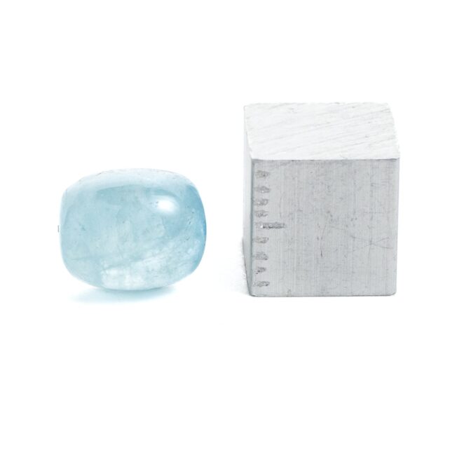 ミルキーアクアマリンは正式名称ではないため、厳密な定義はありません。インクルージョンによって、透明度が低く見えるアクアマリンの原石からカットされます。レアストーンでも、産地が限られているわけでもないのですが、なぜかその姿を見ることはとても稀です。特に、美しいものとなると滅多に入荷しません。アクアマリンといえば、透明で一片の曇りもあってはならない、という先入観があるのかもしれませんね。でも、美しいブルーと透け感を残しながらも、柔らかに光を捉える独特の質感が、優しいく瑞々しい魅力を湛えています。